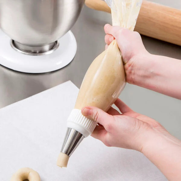 Comfortably decorate cakes, cupcakes, and other confectionary delights with this Ateco 4635 12" soft heavy duty clear disposable pastry bag! Whether you're decorating at a commercial bakery or for a catered event, this Ateco bag is a convenient disposable option. Simply cut the end of the bag and insert the pastry tube of your choice to create basket weaves, roses, and other beautiful decorations.