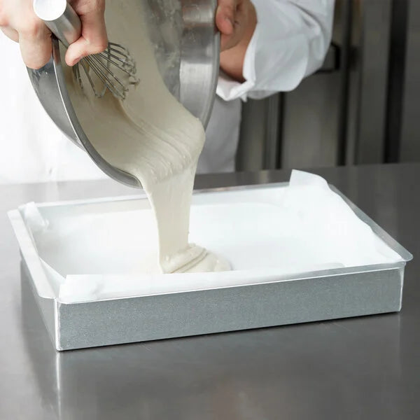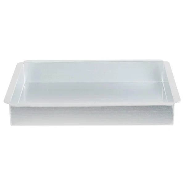 Bake rectangular-shaped cakes to perfection with the Ateco 12913 aluminum rectangular straight-sided cake pan! Made of durable 14-gauge anodized aluminum, this cake pan features straight sidewalls which are ideal for layer cakes. Compared to pans with tapered sides, this straight-sided pan creates smooth cake edges and helps eliminate wasted product since the edges don't need to be trimmed off.