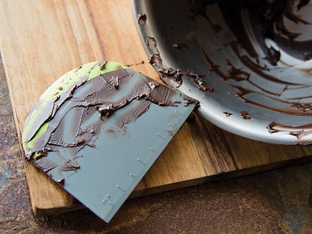 This great item works as a multi-functional kitchen gadget - 3 in 1 Bowl Scraper, Chopper and Measurer.