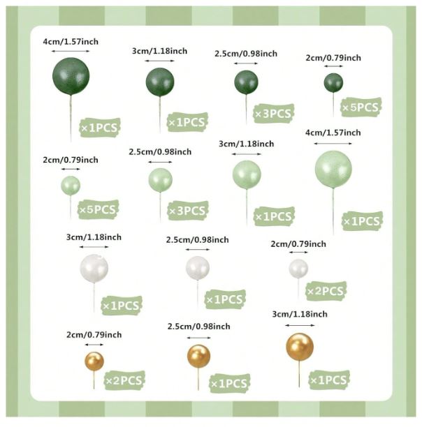 32pcs Green, Gold and White Foam Balls Cake Topper