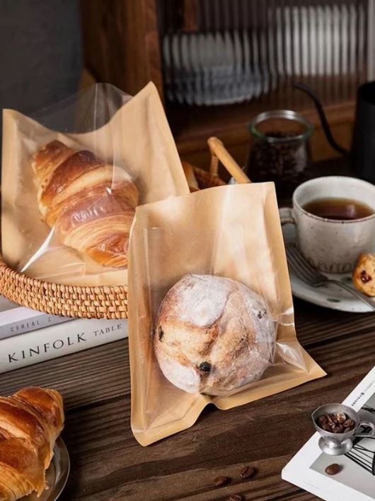 50pcs/set Paper Bread Packaging Bag, Simple Transparent Oil-proof Bread Packaging