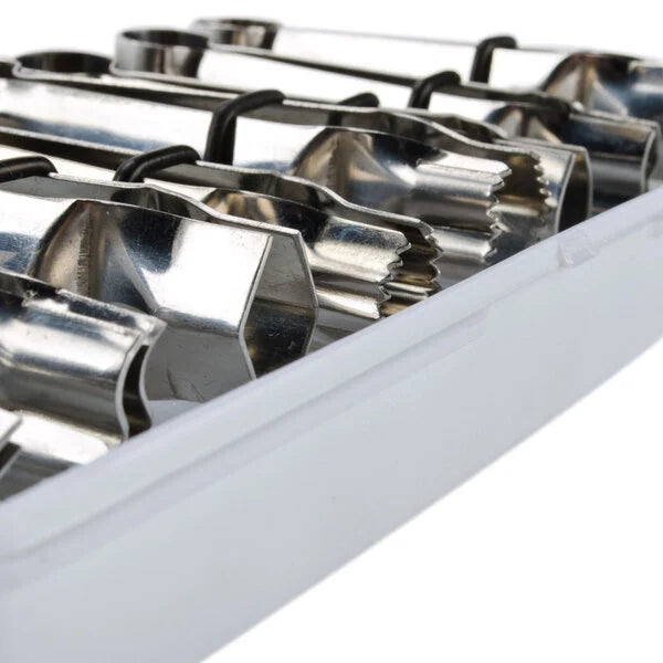 Create beautiful and uniform designs with the Ateco 4202 8-piece crimper tool set! This set can be used to emboss icings and fondants as well as pastry and pie crust.