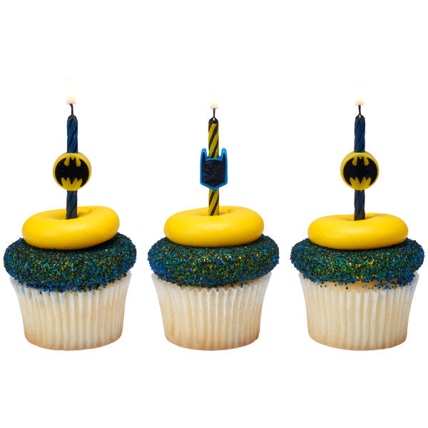Light the way with these bat symbols on your cake! Blue and yellow spiral candles and each feature either the bat symbol or Batman™ face.Dimensions: