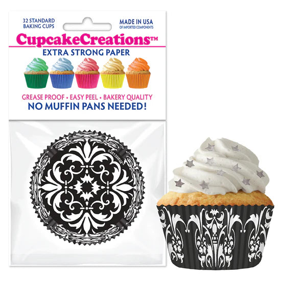 - Cupcake Creations 32 Piece Standard Black Damask Baking Cups.