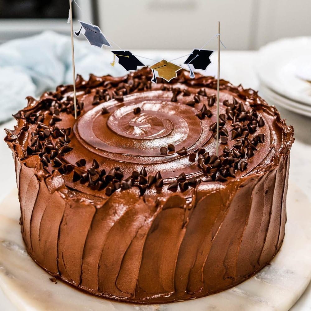 Black, Gold & Silver Graduation Cap Garland Cake Topper