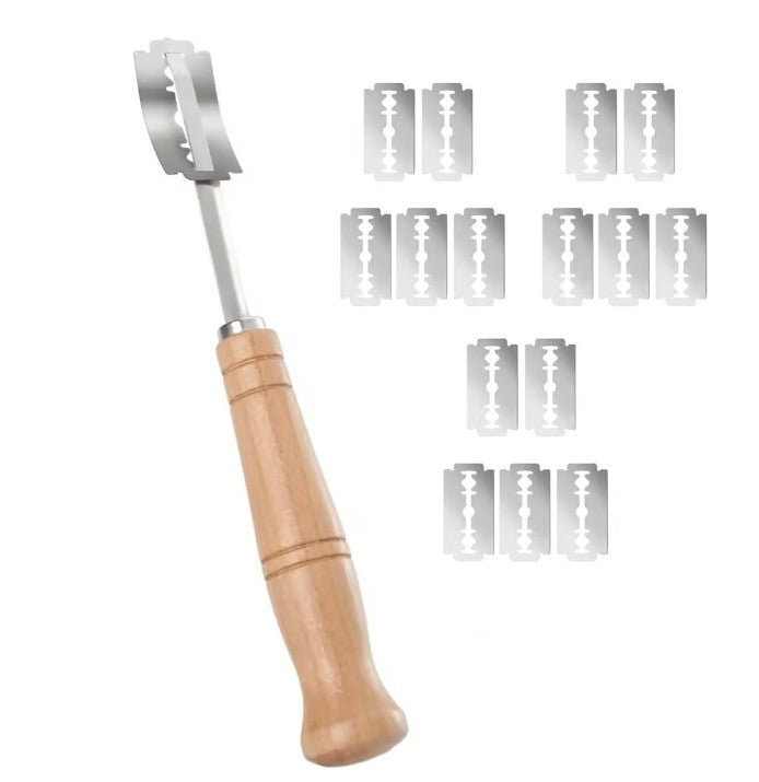 Whether you are a beginner baker or a seasoned professional, a reliable bread lame is essential tool to have. With durable stainless steel construction the Fox Run Bread Lame provides consistent results. Whether it is a simple score or an elegant design the metal blades and wood handle make it comfortable and easy to get the job done. This set will help you through countless bakes as it comes with 5 bread scoring blades to make sure you are always working with the best tool possible.