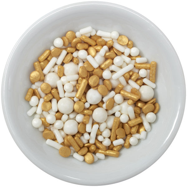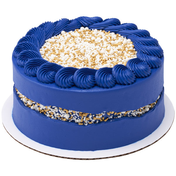 Add some color and texture to your treats with this premium sprinkle blend! Blends offer a fully edible variety of different shaped and sized sprinkles, quins, nonpareils, pearls, and sanding sugars.