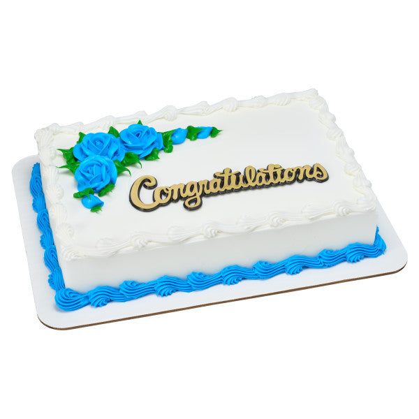 Congratulations! These are great cake layons written in gold and silver foil, to use for graduations to retirement parties!