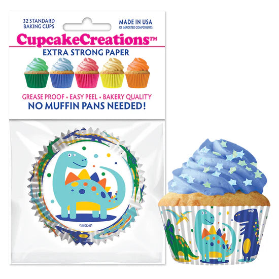 - Cupcake Creations 32 Piece Standard Dinosaurs Baking Cups.
