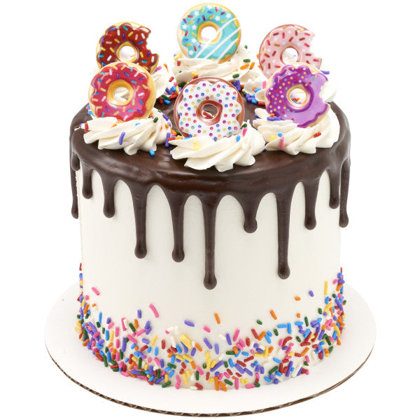 Make your sweet treats extra delicious when you add these donut rings on top of your desserts. Assortment includes donuts with various frosting colors. Great for cupcakes, donuts, or even finish off the look of a cake.