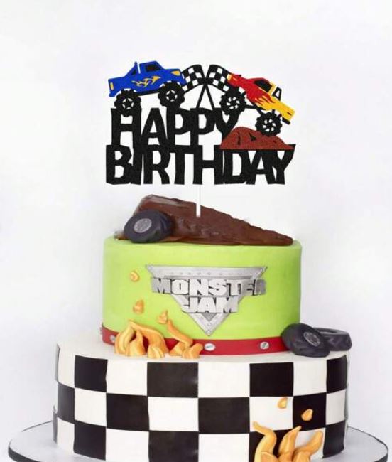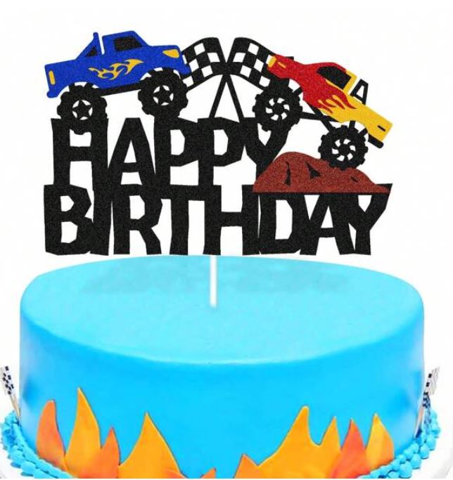 Double-side Glittering Windmill & Car Themed Cake Topper