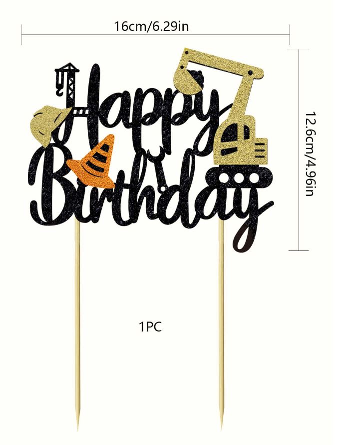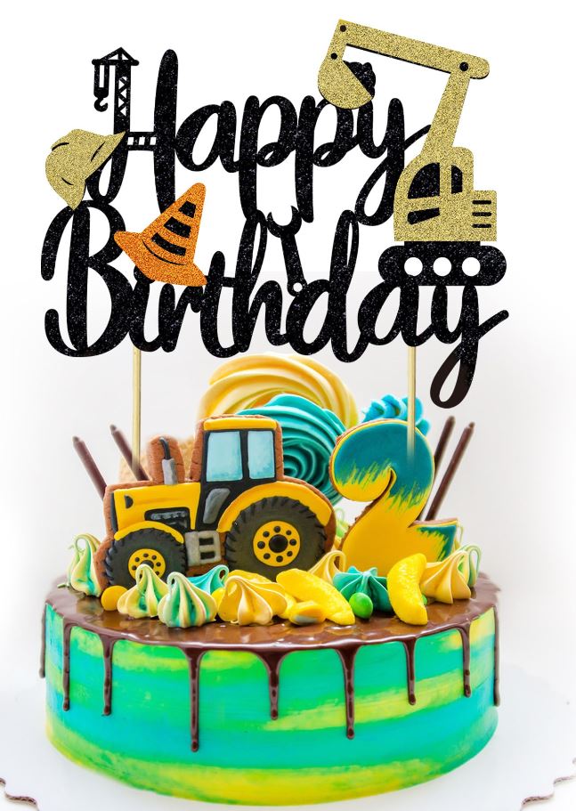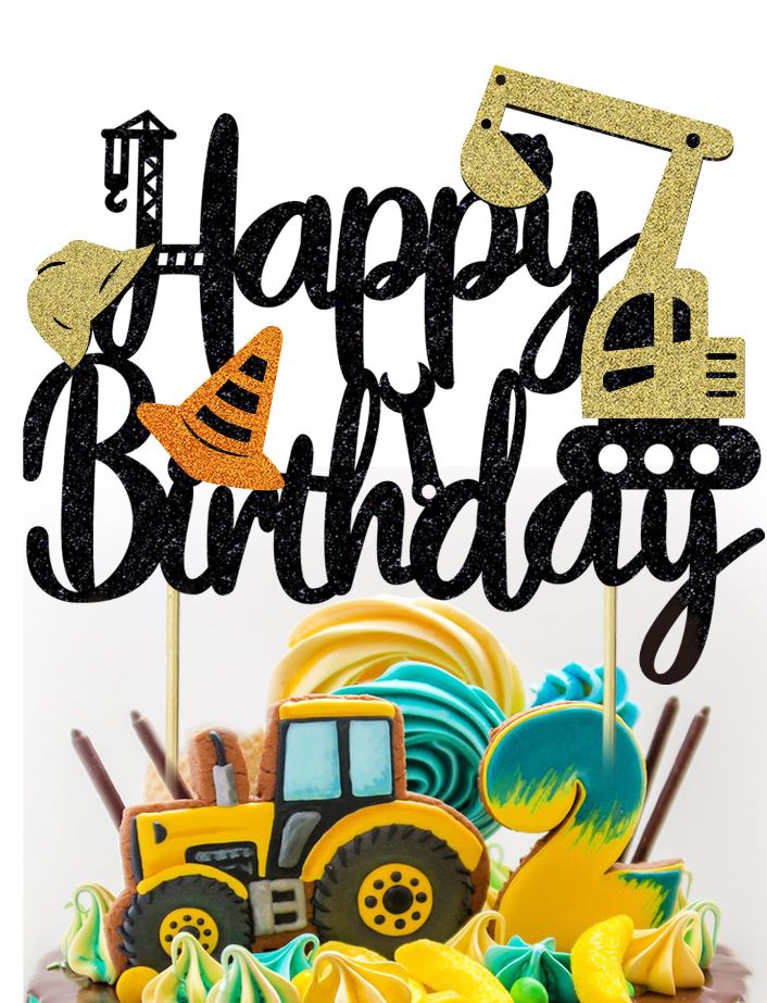 Excavator Themed Happy Birthday Cake Topper