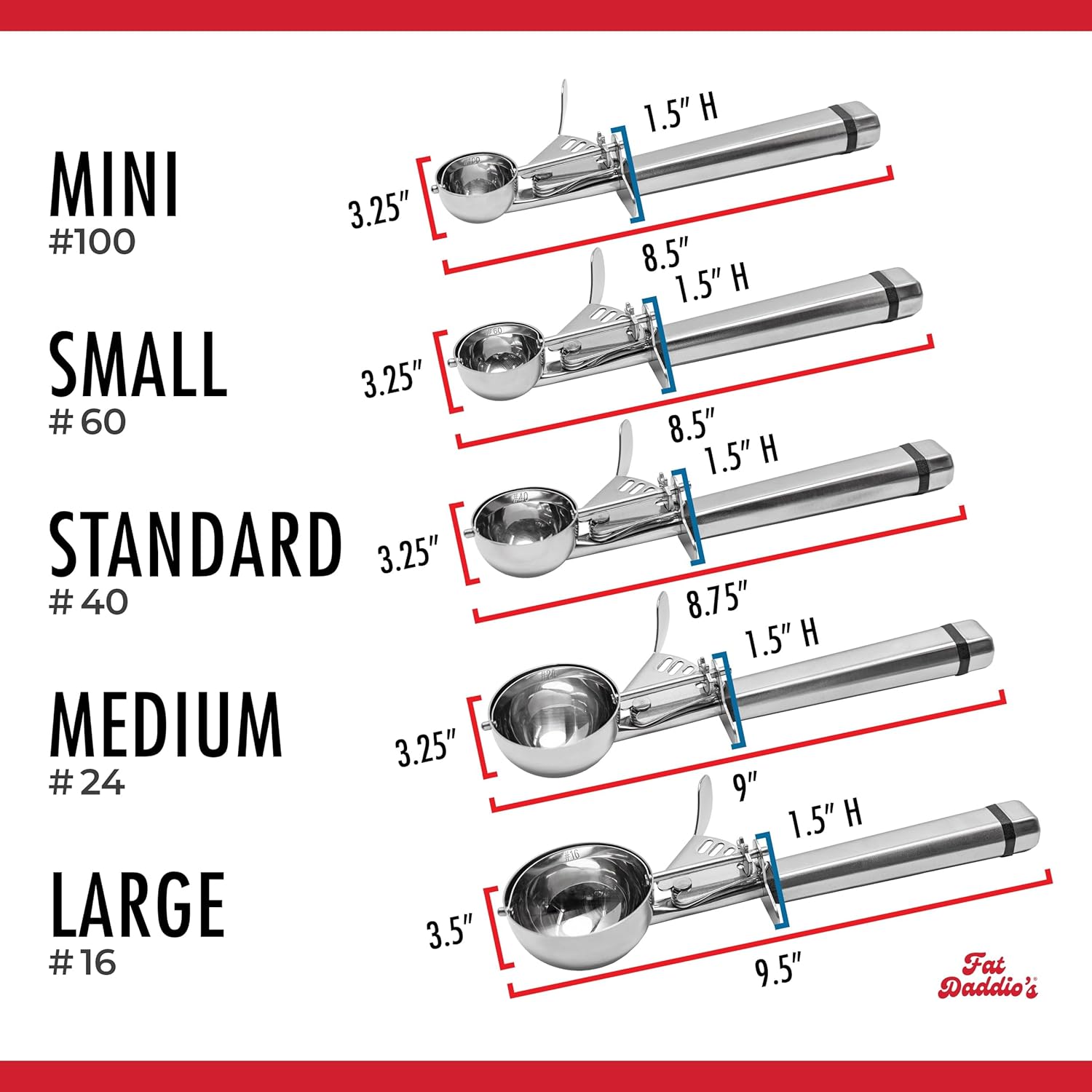 Experience precision and ease with the Fat Daddio's Stainless Steel Mini Scoop #100, perfect for both home bakers and professional chefs. This versatile scoop holds 1 1/2 teaspoons (22 ml) and makes 2" cookies, featuring a smooth release mechanism for consistent and accurate portions of batter, dough, or fillings.