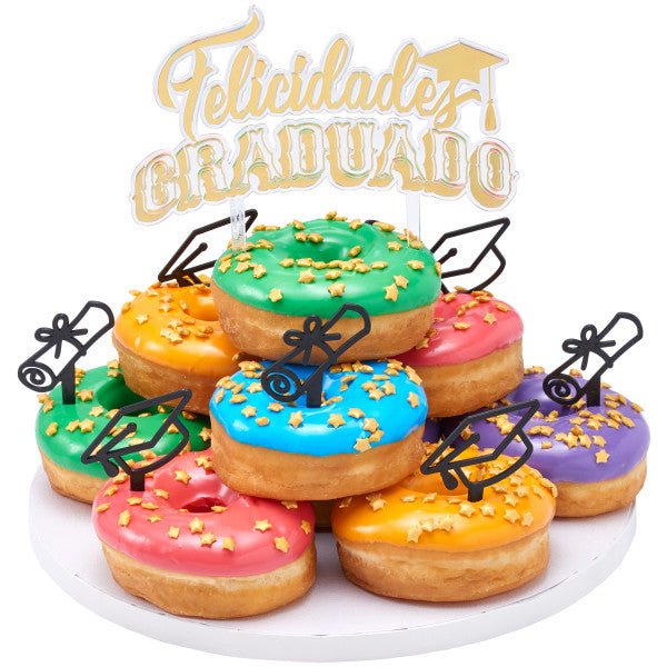 Celebrate the graduados by honoring their rich heritage and paying homage to their roots. This Felicidades Graduado layon is the perfect addition to cakes big or small. Stamped with a gold foil, it's sure to shine atop your design!