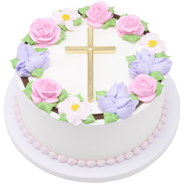 Celebrate any religious event with the beautiful and simple Gold Cross Layon. Versatile, classic and timeless, this stunning layon will be the shining center of the celebration.