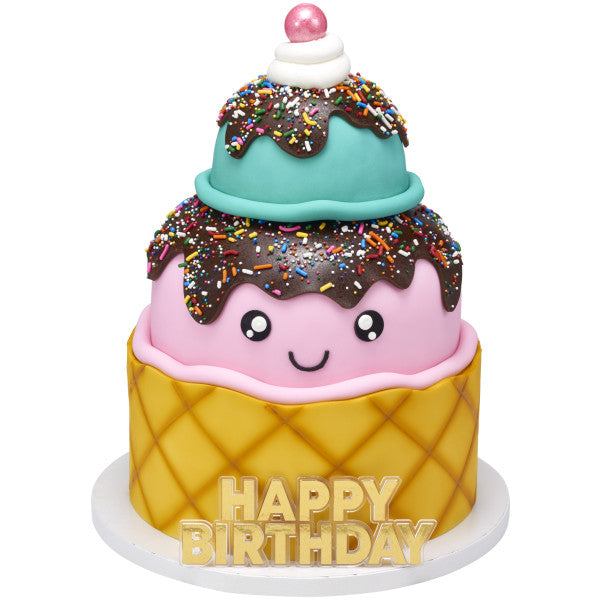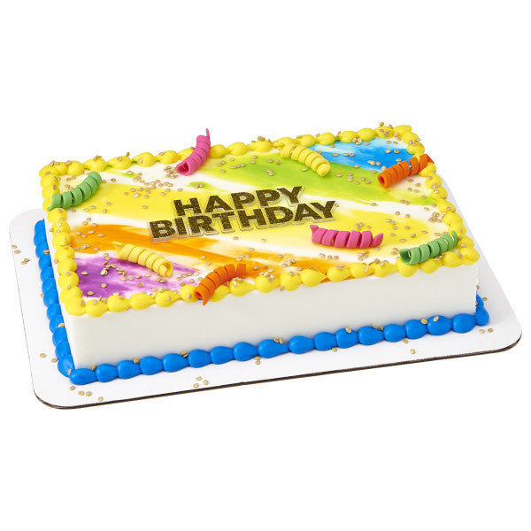 Make your next birthday cake sparkle with this gold and glitter Happy Birthday layon.