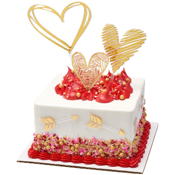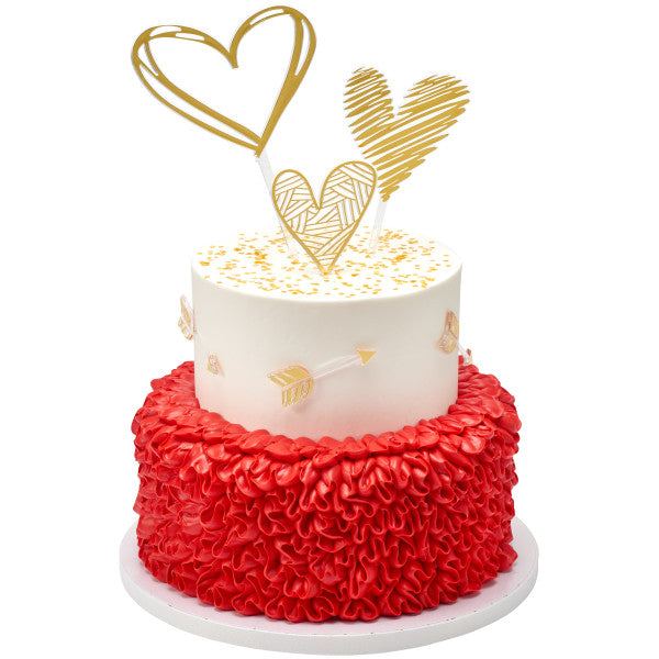 Transform any cake into an elegant show piece with assorted gold foil hearts! 3-piece set.