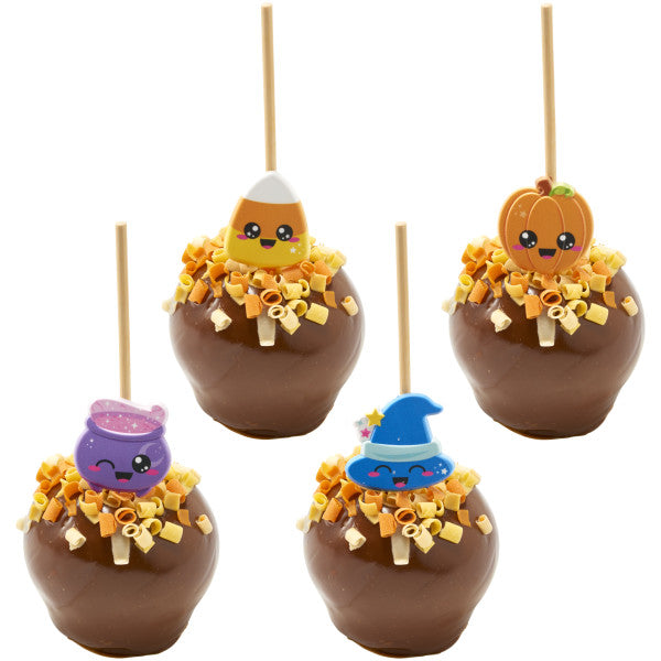 Calling all Halloween Cuties! We have got the perfect TRICK for you this season. These rings feature friendly faces this Halloween like a witches hat, a bubbling cauldron, a candy corn cutie and a smiling pumpkin. Who said Halloween has to be scary? Make it scary CUTE in the cake case.