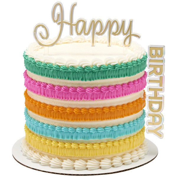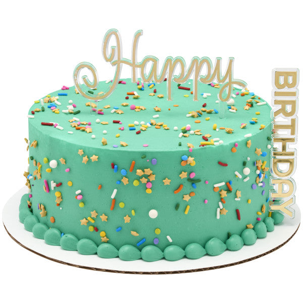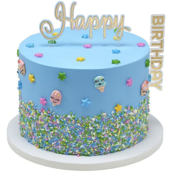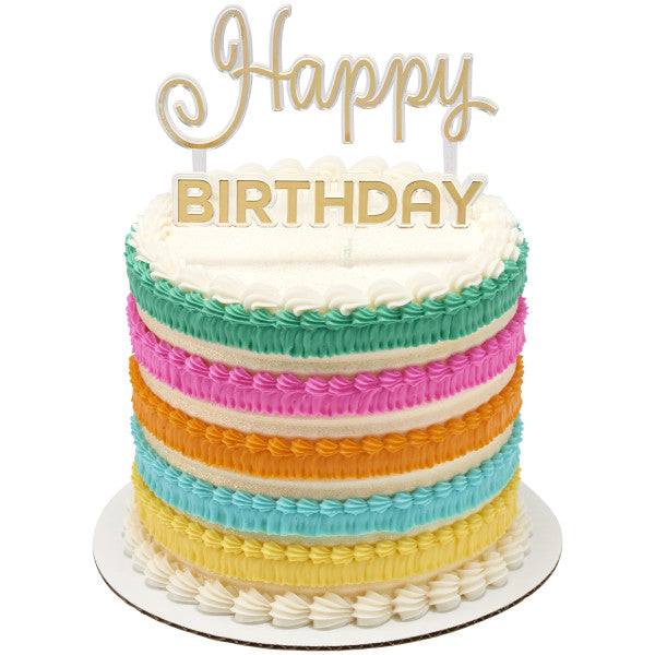 These are the golden days! Bring a little metallic flare to the birthday cake with this gold Happy Birthday vertical layon.
