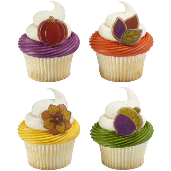 Celebrate Thanksgiving with these fun rings. Assortment includes pumpkins, leaves, acorns and flowers. Great for cupcakes, donuts, or even finish off the look of a cake.