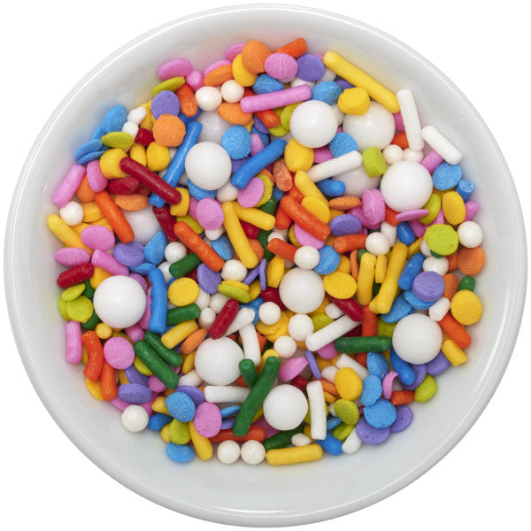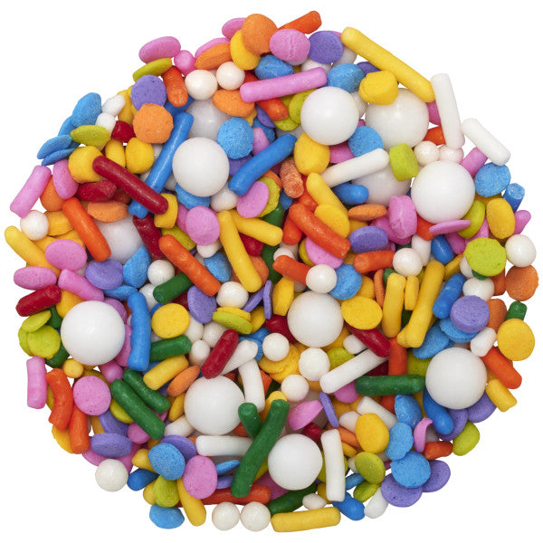 Add some color and texture to your treats with this premium sprinkle blend! Blends offer a fully edible variety of different shaped and sized sprinkles, quins, nonpareils, pearls, and sanding sugars.