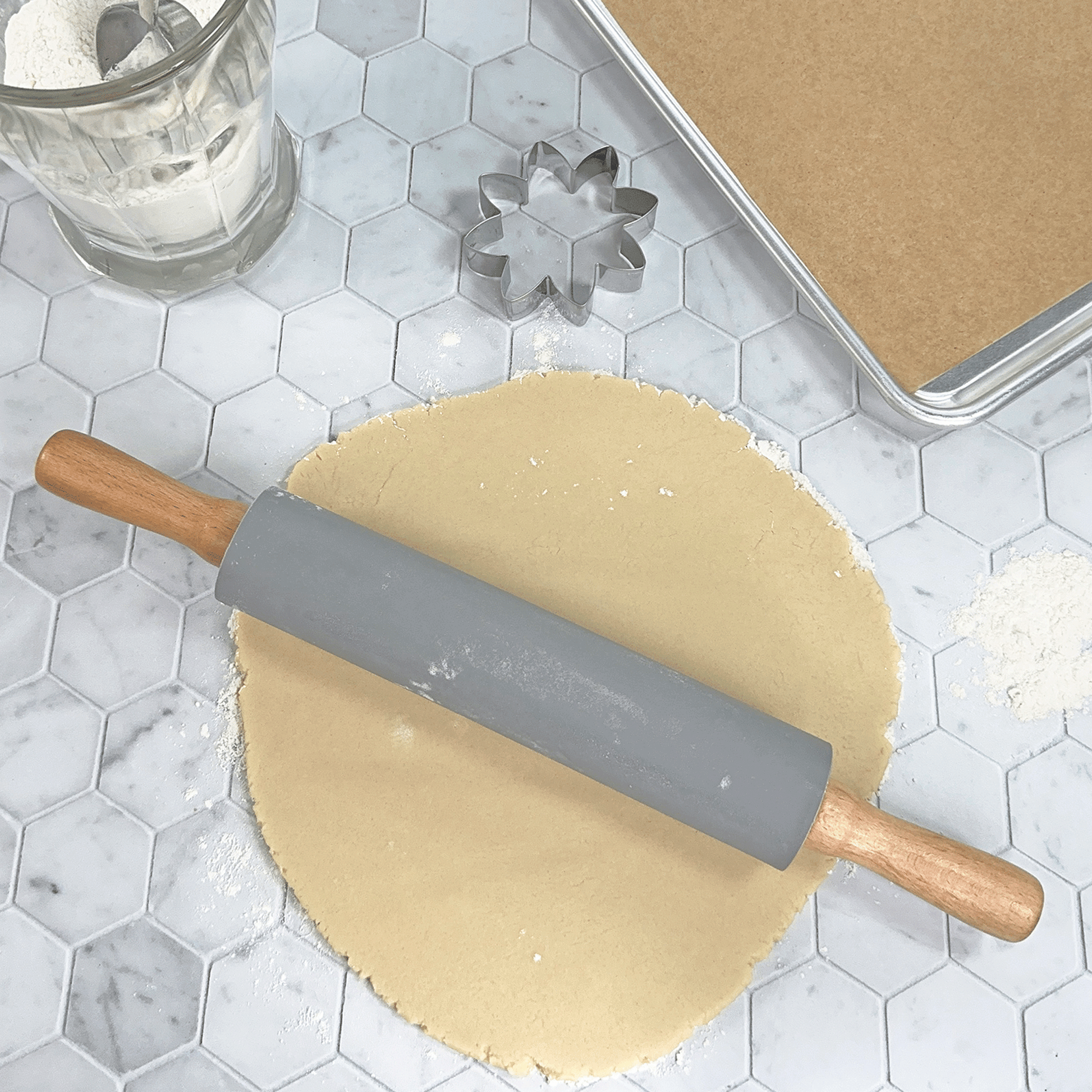 Our non-stick silicone rolling pin makes rolling dough and clean up easy! Great for dough, pastries, handmade noodles, pizza, bread and fondant. Secure and sturdy wooden handles allow for even distribution of pressure.