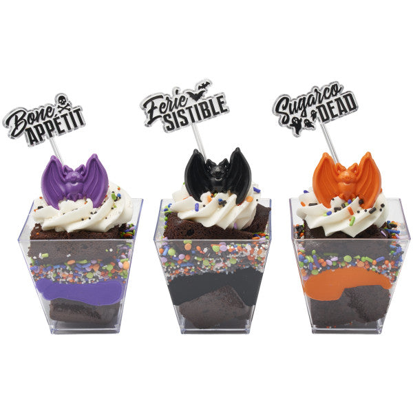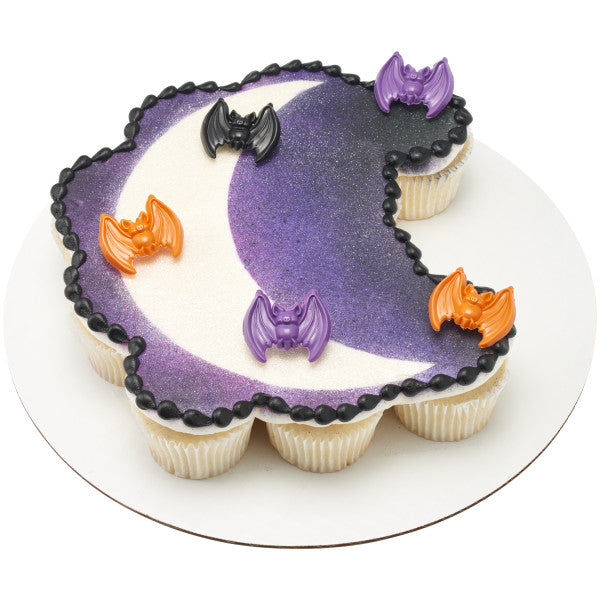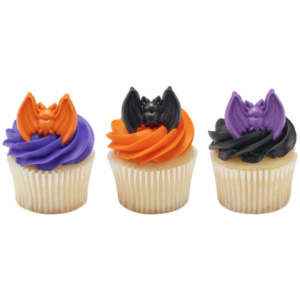 We are batty for these bats! These bat rings come in iconic Halloween colors of black, orange and purple - the perfect simple topper for any Halloween treat. Great for cupcakes, donuts, or even finish off the look of a cake.