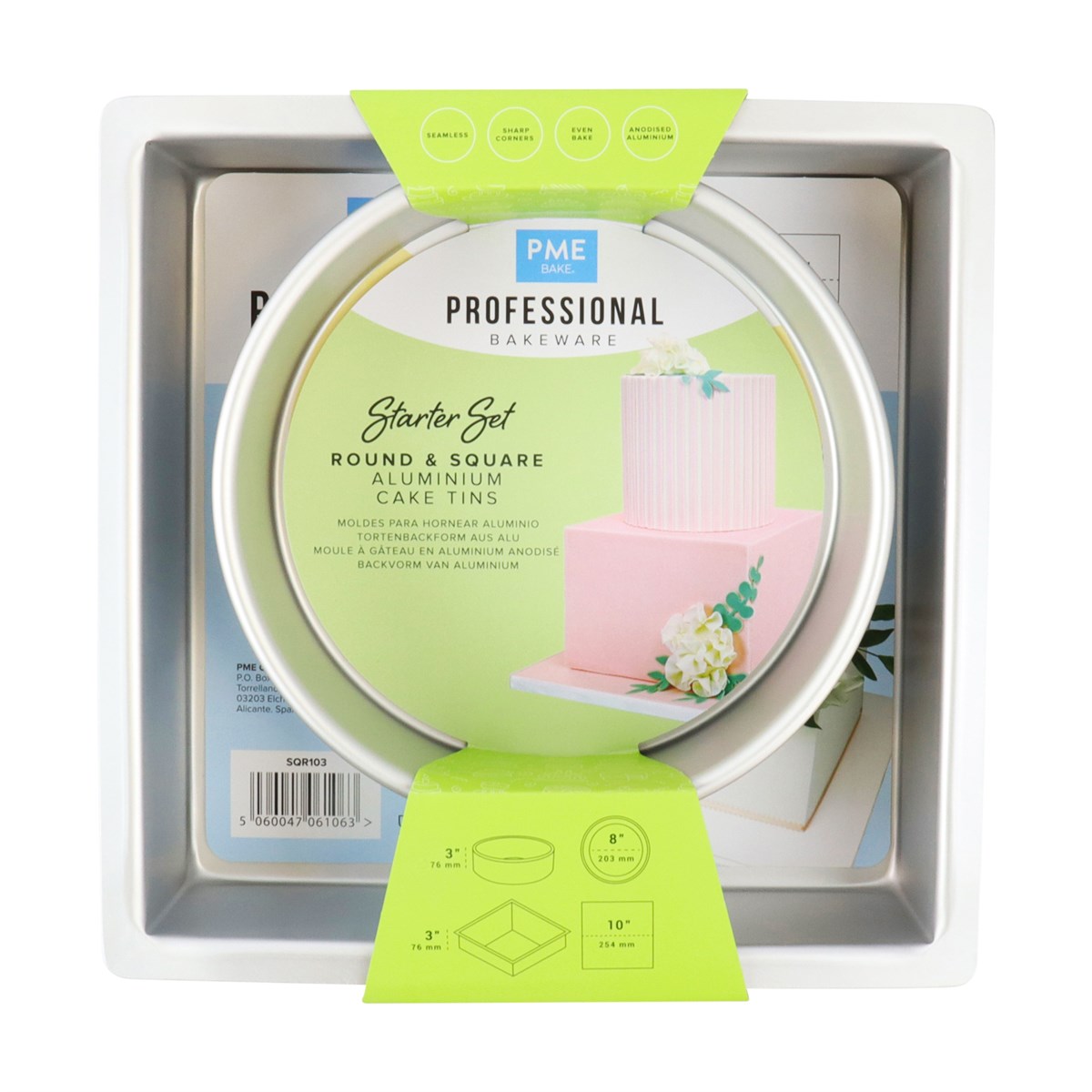 Starter Cake Pans - Round 8 x 3-Inch, Square 10 x 3-Inch, Set of 2