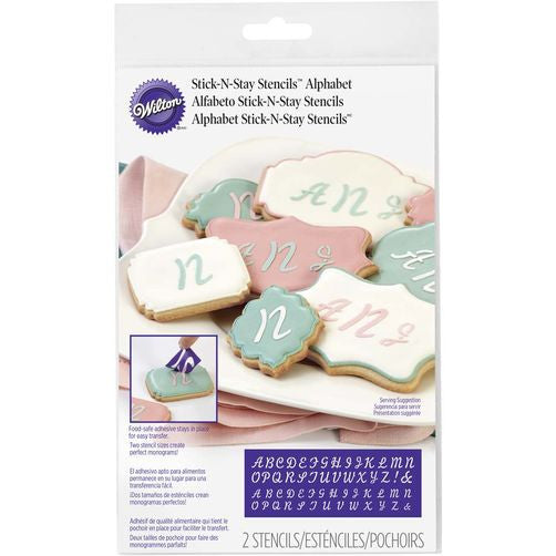 Easily add monograms and messages to treats. Sized for cookies and fondant plaques, perfect for the Wilton Plaque Cut-Outs Set (sold separately). The food-safe adhesive backing holds stencils in place. Color in your stencil using your favorite color of Wilton Color Dust or Color Mist food color spray (sold separately). Rinse and reuse again and again. Includes the entire uppercase and lowercase alphabet.