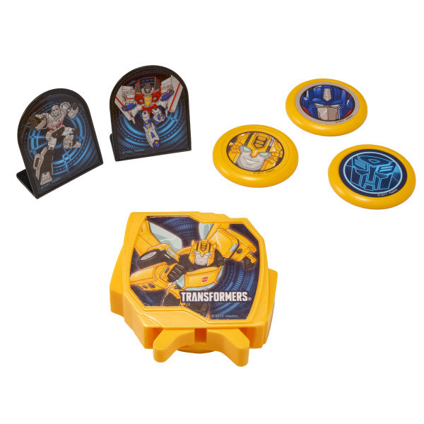 Autobots Assemble! Join in the Transformers™ battle with this interactive DecoSet! Your Transformer Fans will love these Autobot Battle DecoSet. Features disk shooter with three disks and layon targets for hours of fun after the party ends. 6-Piece set.