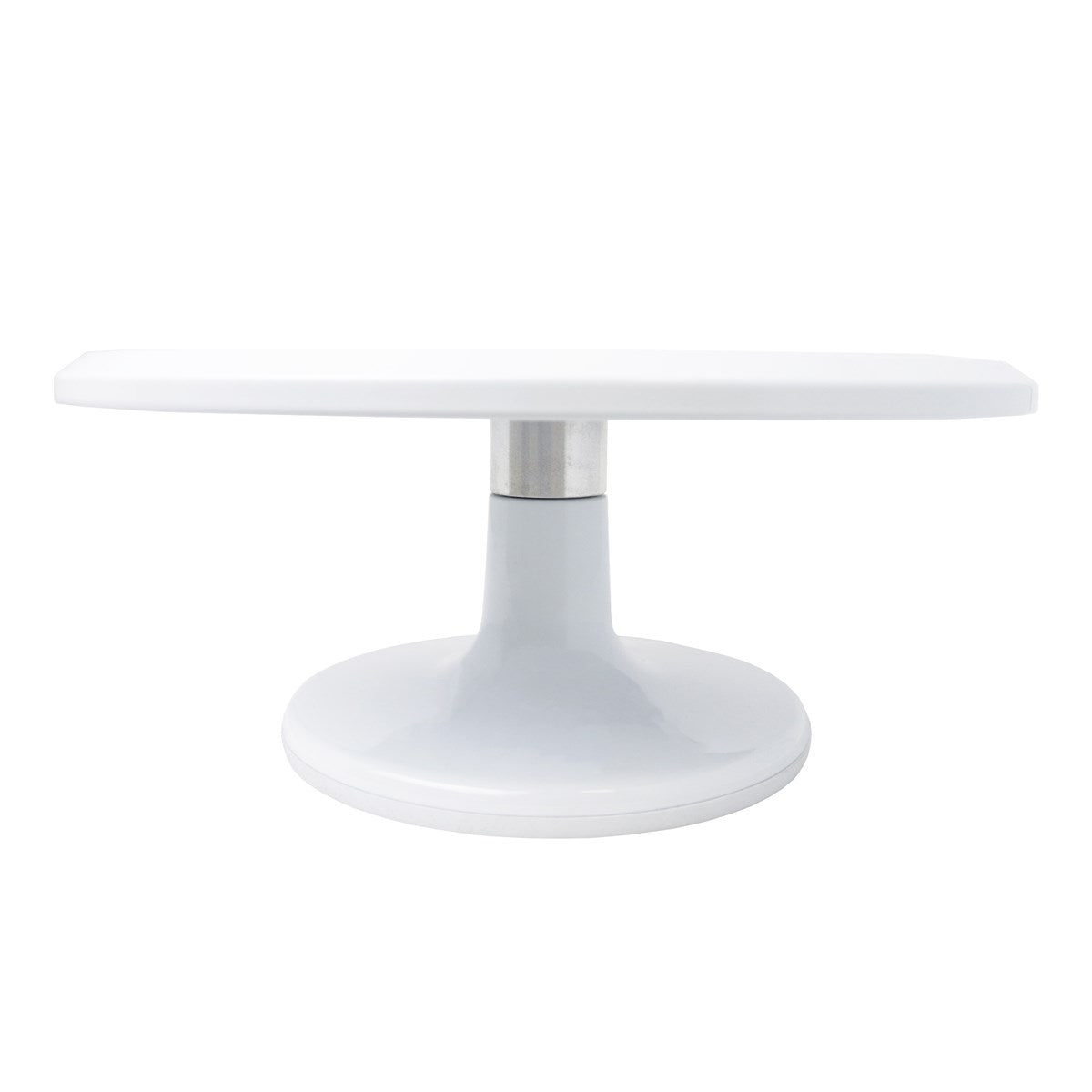 - Flat surface with dipped corners for easy access to bottom of cake without catching piping bag on edge of the turntable