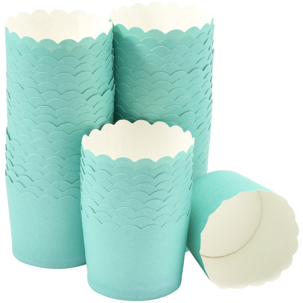 Give your display that extra pop of color. Teal baking cups with a delicate scalloped edge are prefect for your delicious cupcakes. Oven safe.